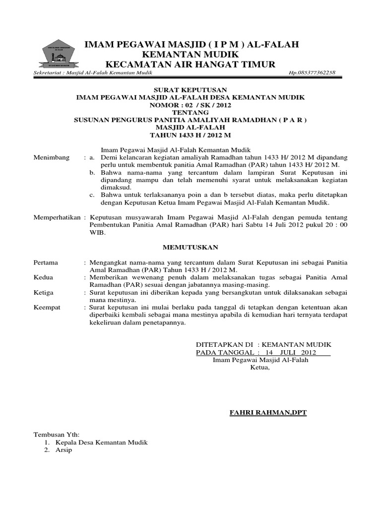 Contoh sk dkm masjid dari desa dunia sosial.